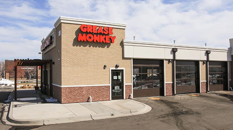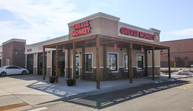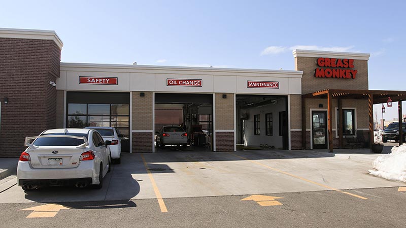 Grease Monkey facility with 2 Monkey Shine car wash bays in Commerce City. CMU construction with modular/prefab lube bays. Hydronic Ice/Snowmelt system for operational safety at the wash bays.