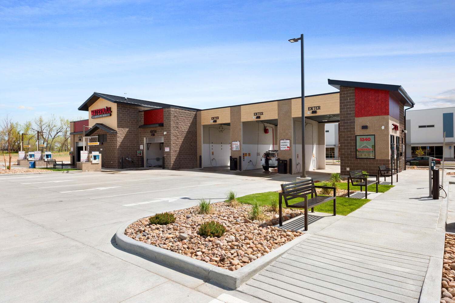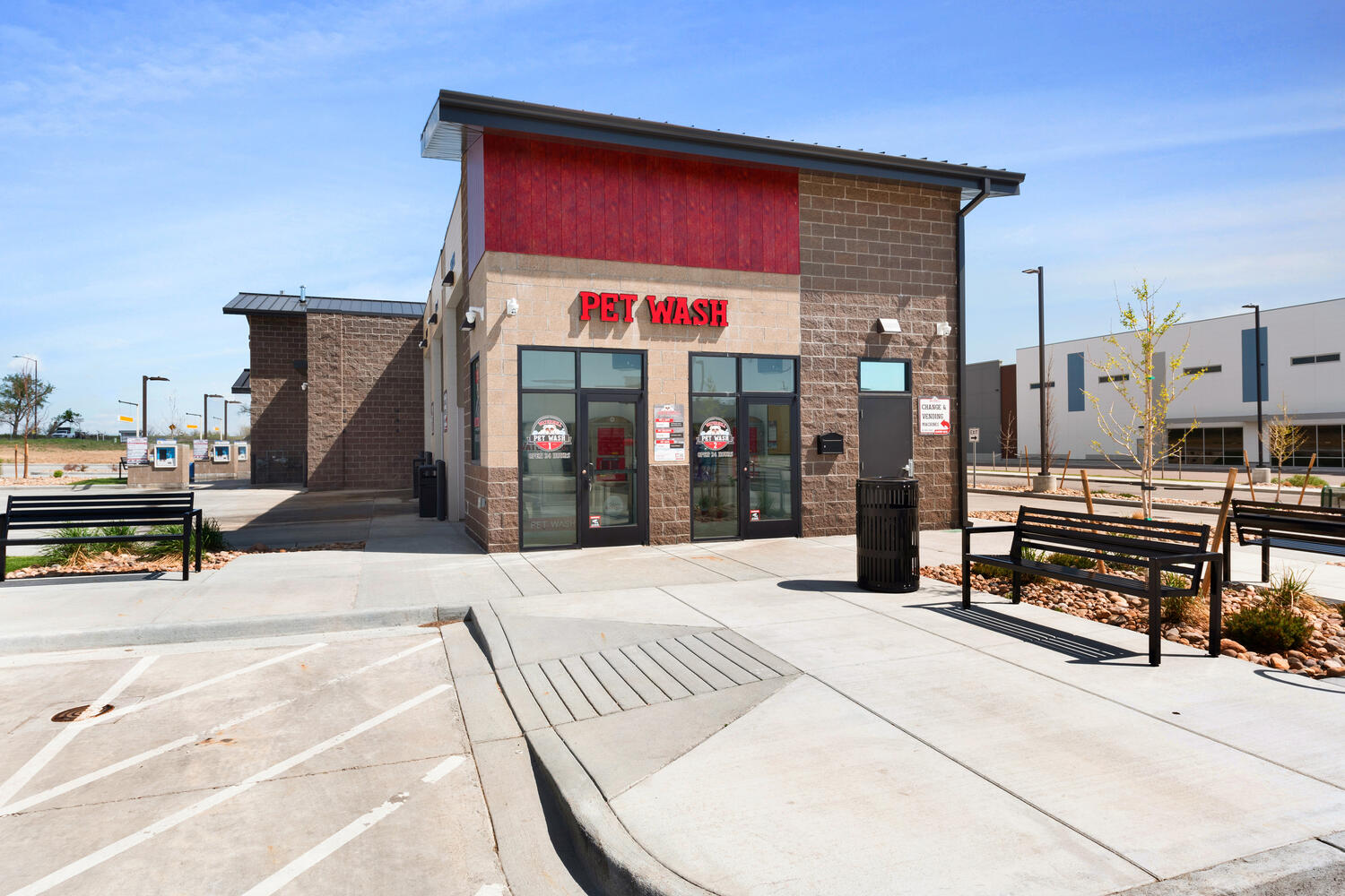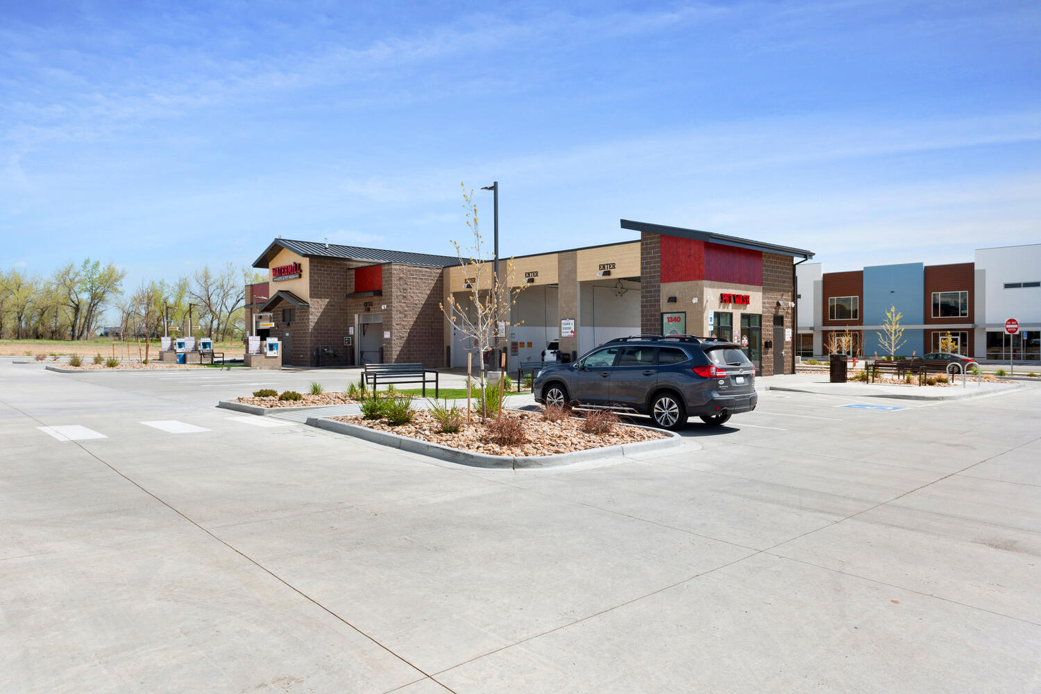 Car Wash with 3 Touchless Automatics and 3 self serve bays. Includes 2 self serve dog washes, snowmelt, on-site stormwater detention, and high efficiency water heating system.