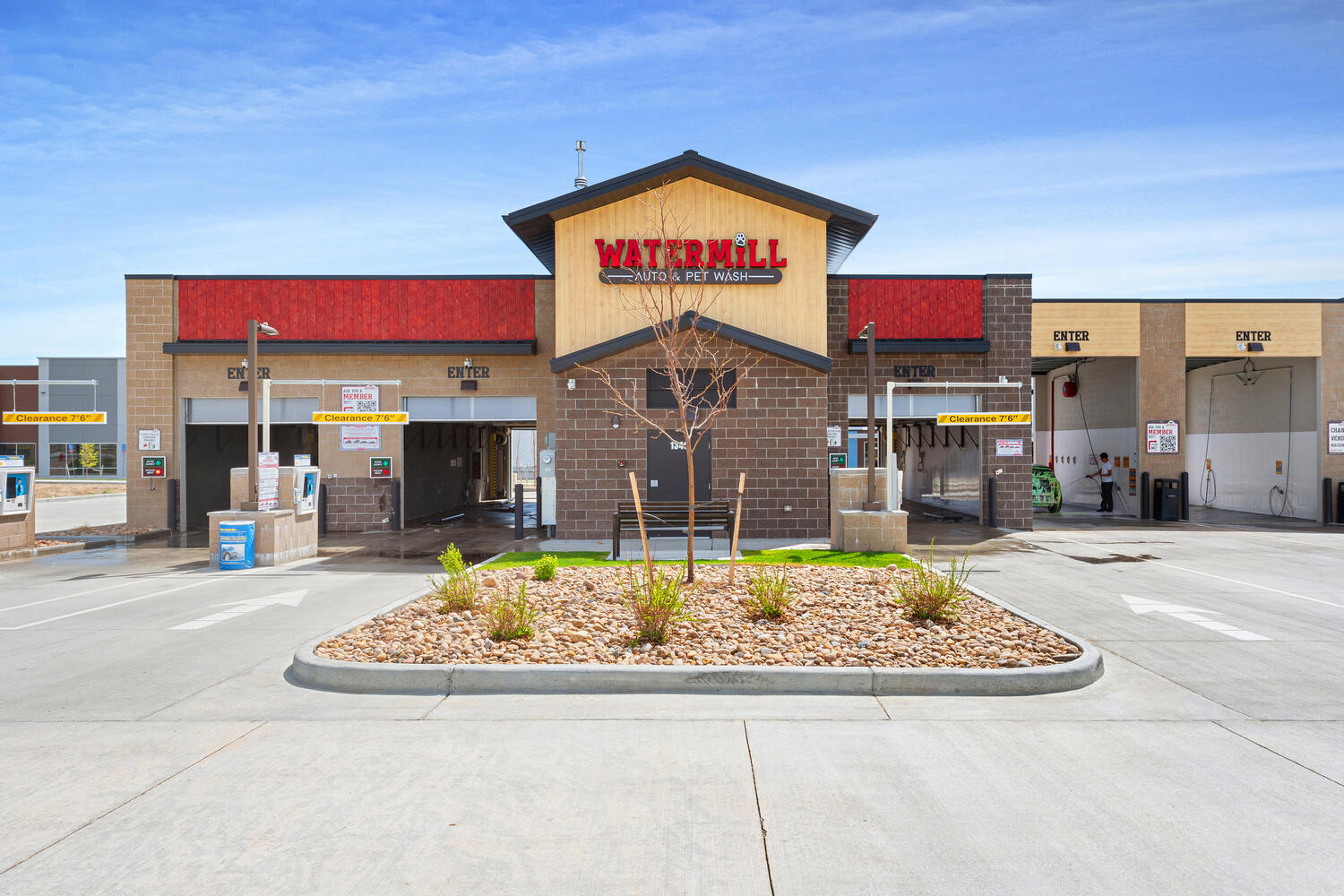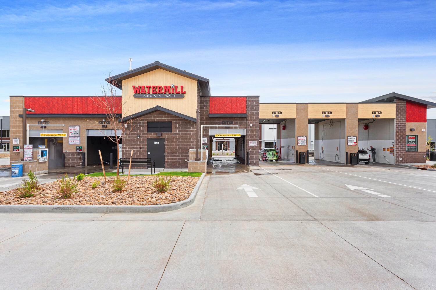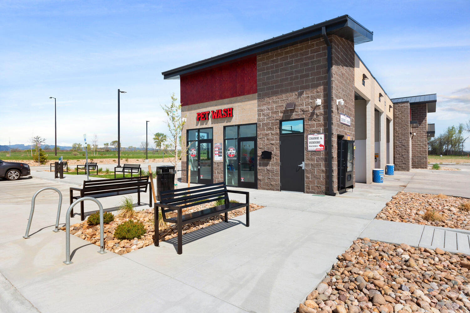 Car Wash with 3 Touchless Automatics and 3 self serve bays. Includes 2 self serve dog washes, snowmelt, on-site stormwater detention, and high efficiency water heating system.